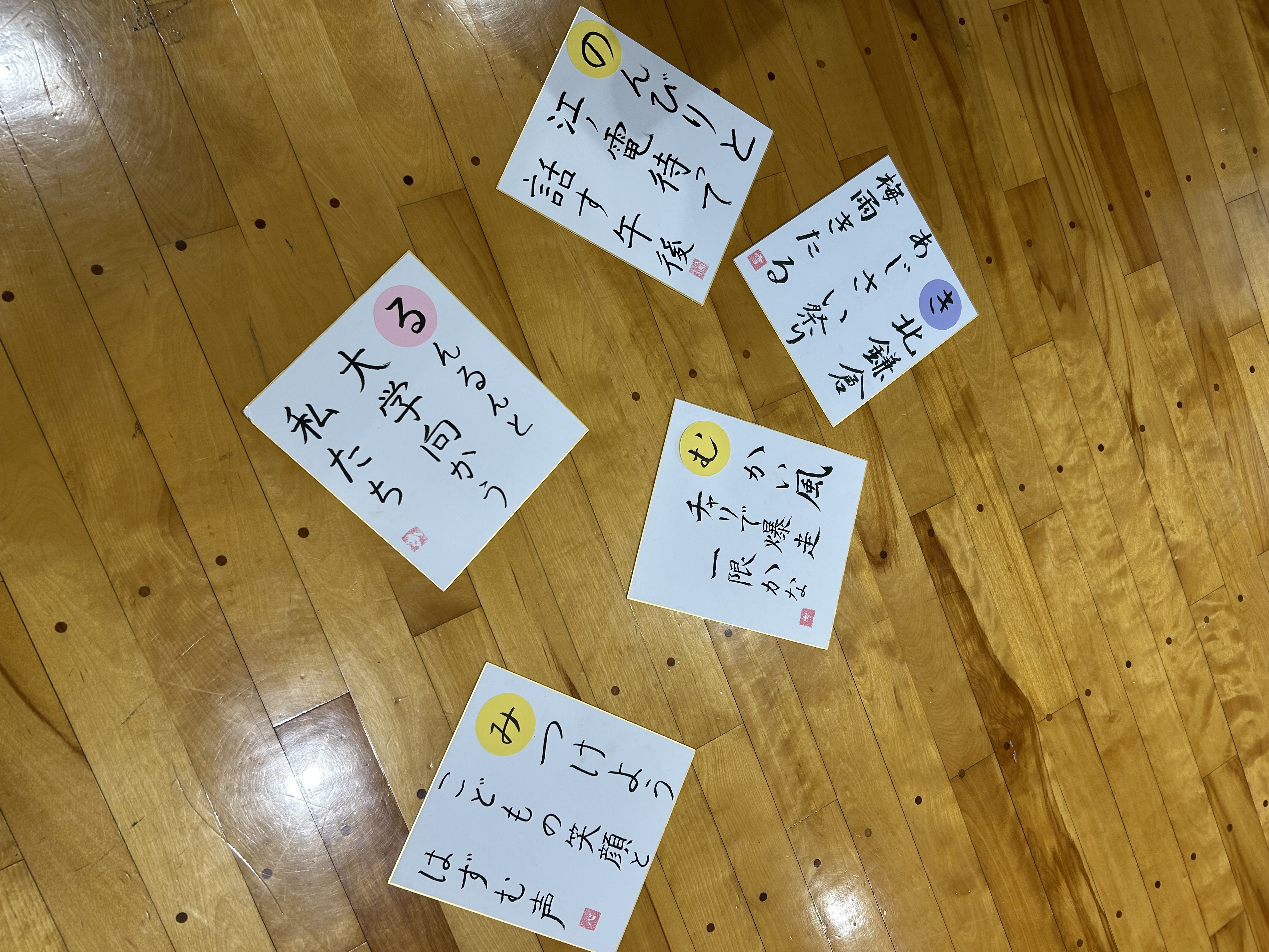 12月17日(水)、初等教育学科1年生の必修授業「初等教育学基礎演習②」において、2科目(書道、子どもと表現)の授業内で作成したオリジナルのカルタを使った「かまくらカルタ大会」を開催しました。このカルタは、「鎌倉女子大学のキャンパスライフ」をテーマに、読み札を「書道」の授業で、絵札を「子どもと表現」の授業で作成したものです。日本語の五十音(あいうえお~わをん)に、濁音(例:が、ざ)、半濁音(例:ぱ...