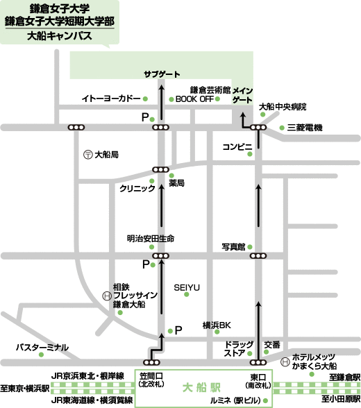 JR横須賀線鎌倉駅東口(八幡宮側)バスターミナル4番乗り場から、京急バスで約10分。