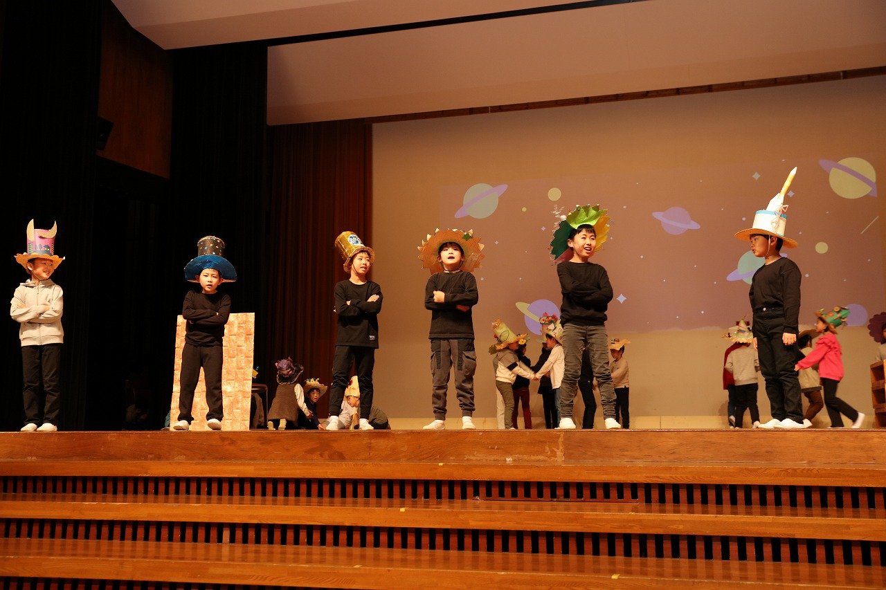 ―「誰もが皆、必ず成長しています。」―初等部長からのお話の後には、学年代表者による振り返りが述べられました。子どもたちの胸には、2学期のさまざまな思い出が去来していたようです。