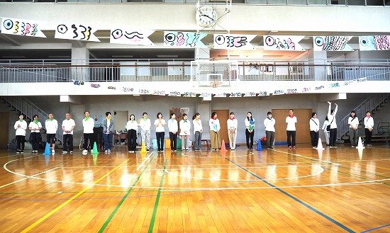 職員たちは、みんなでお揃いのバンダナを首に巻いて登場です!!(^^♪