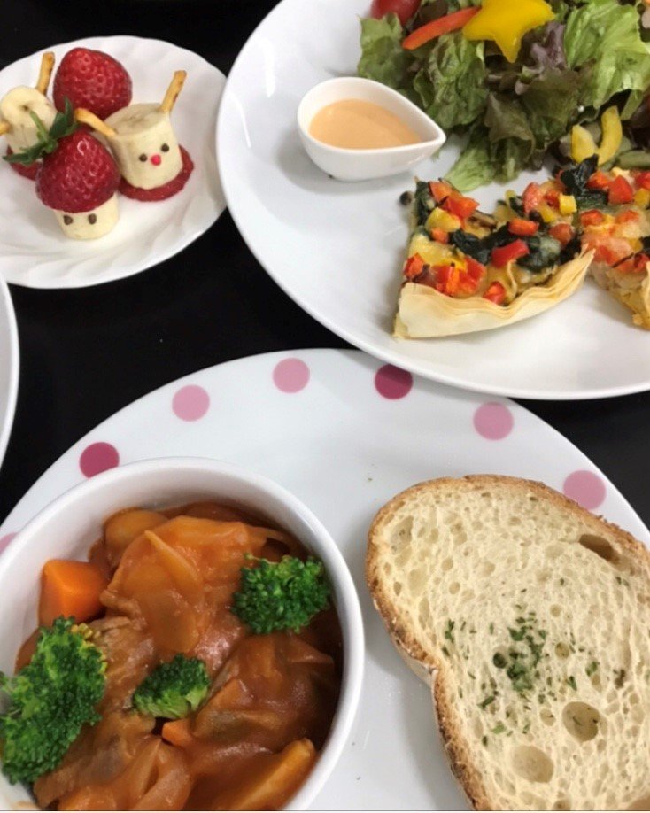 自分達で考えた献立を実際に調理・試食をして、最終的に完成させた献立で指導をするという取り組みです。昨年は「糖尿病患者さんのクリスマス会☆」というテーマで行いました。調理に苦戦したり、献立の分量が多すぎて予定していた器に盛れなかったりと、いろいろなことがありましたが、最終的には無事に栄養の指導の模擬までを行うことができました。