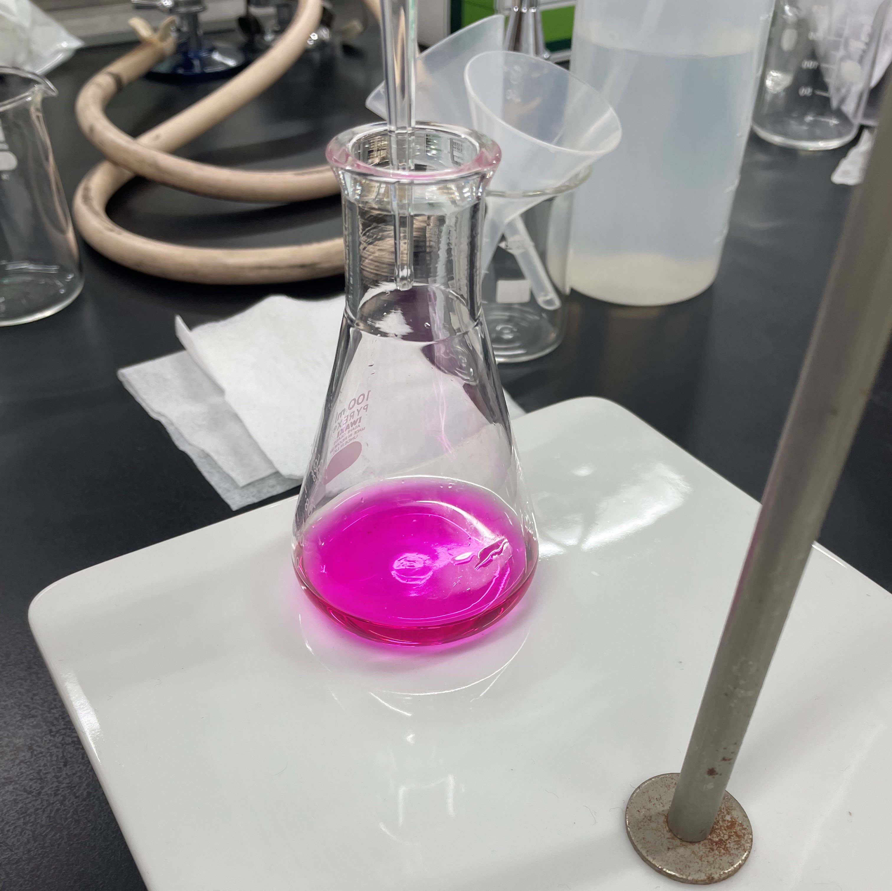でも、ちょっとだけ滴下量が多く溶液が赤く染まってしまいました。