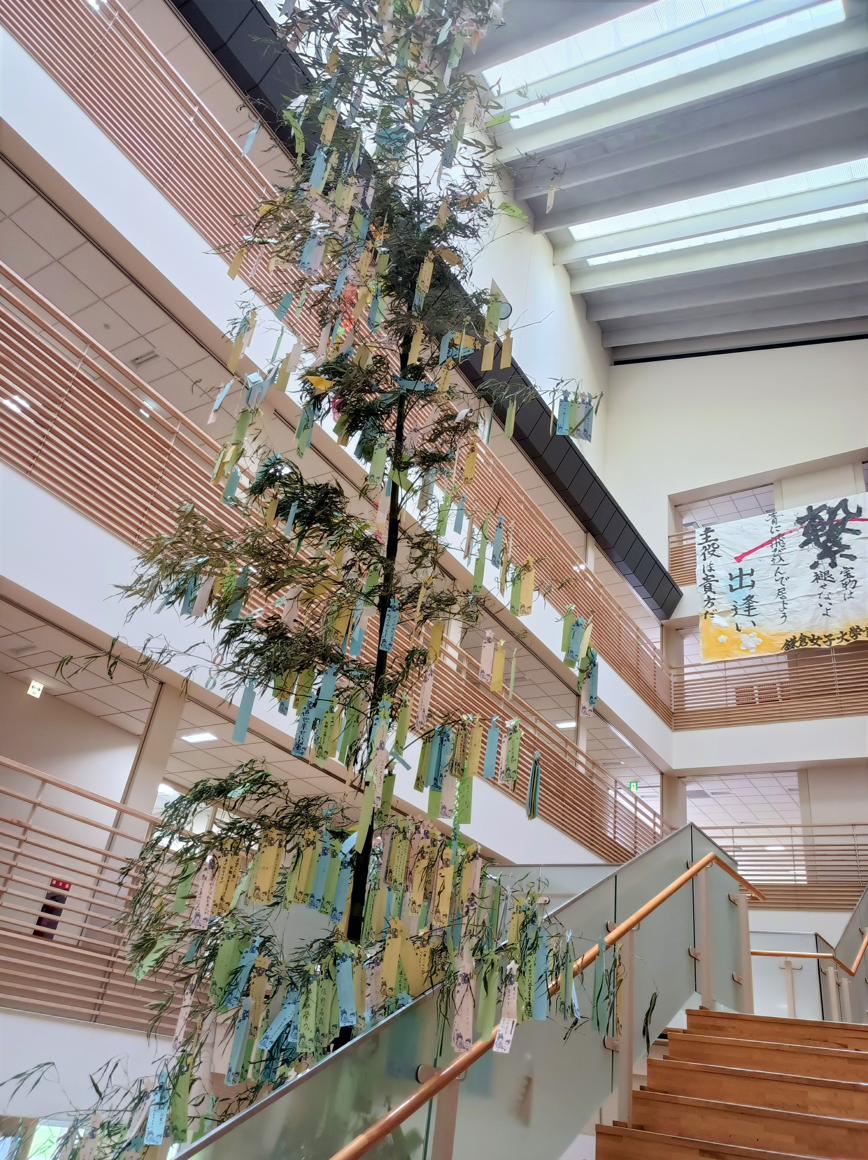 ぎっしりと飾られた短冊には、学生の思い思いの願い事が書かれています。